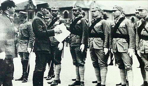 1936年5月1日,视察军事训练学校时点名的蒋介石