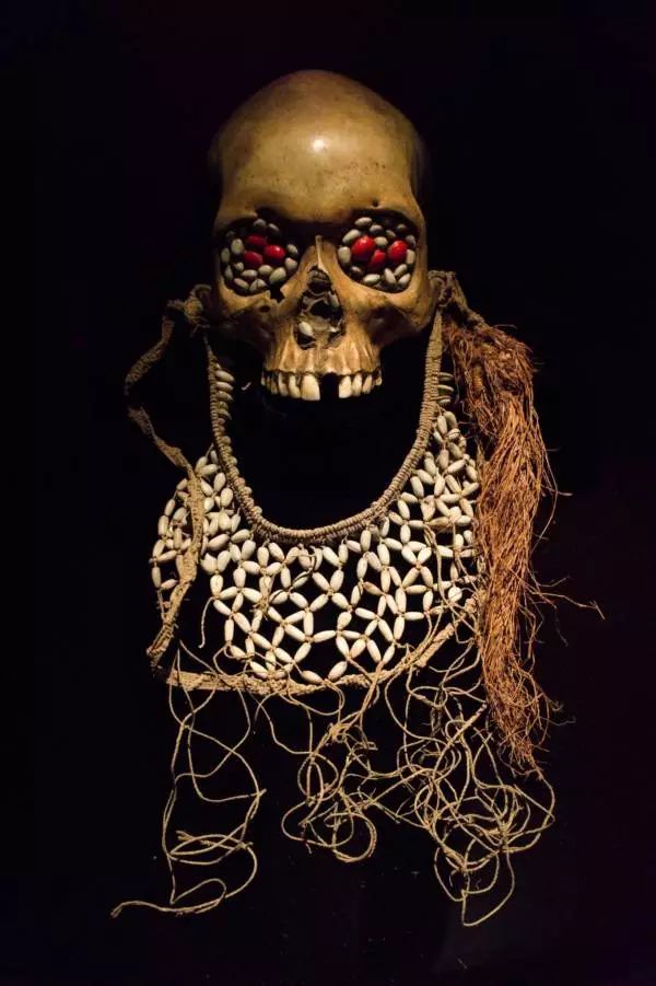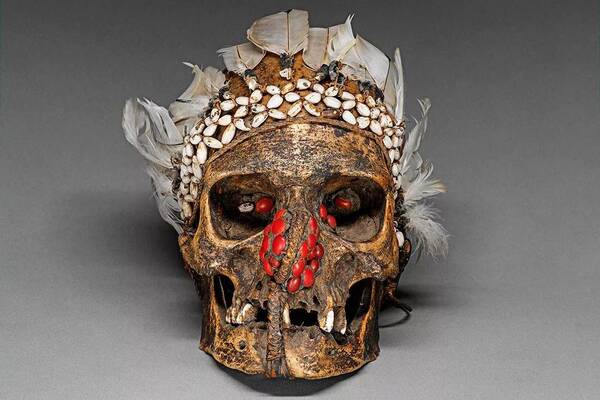 一个阿斯马特人祖先的头骨,常用来作为枕头。图源:Wikimedia Commons
