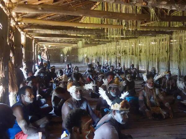 阿斯马特部落的人聚集在大屋里。图源Wikimedia Commons
