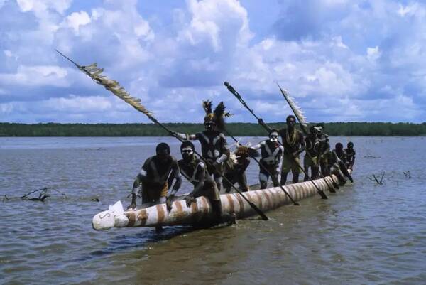 独木舟上的阿斯马特人。图源:Wolfgang Kaehler/LightRocket/Getty Images