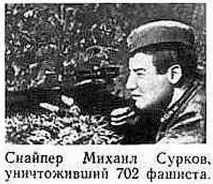 【米哈伊尔·苏尔科夫】狙杀702名德军士兵。隶属苏军第12集团军第4步兵师,一些资料认为他是苏联史上狙杀人数最多的狙击手。