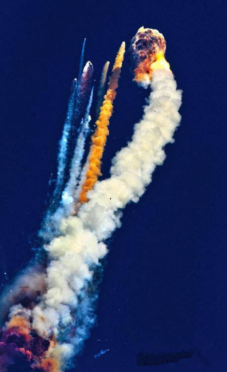1986年1月28日,“挑战者”号航天飞机在肯尼迪航天中心发射后升空爆炸。图片来源:视觉中国。